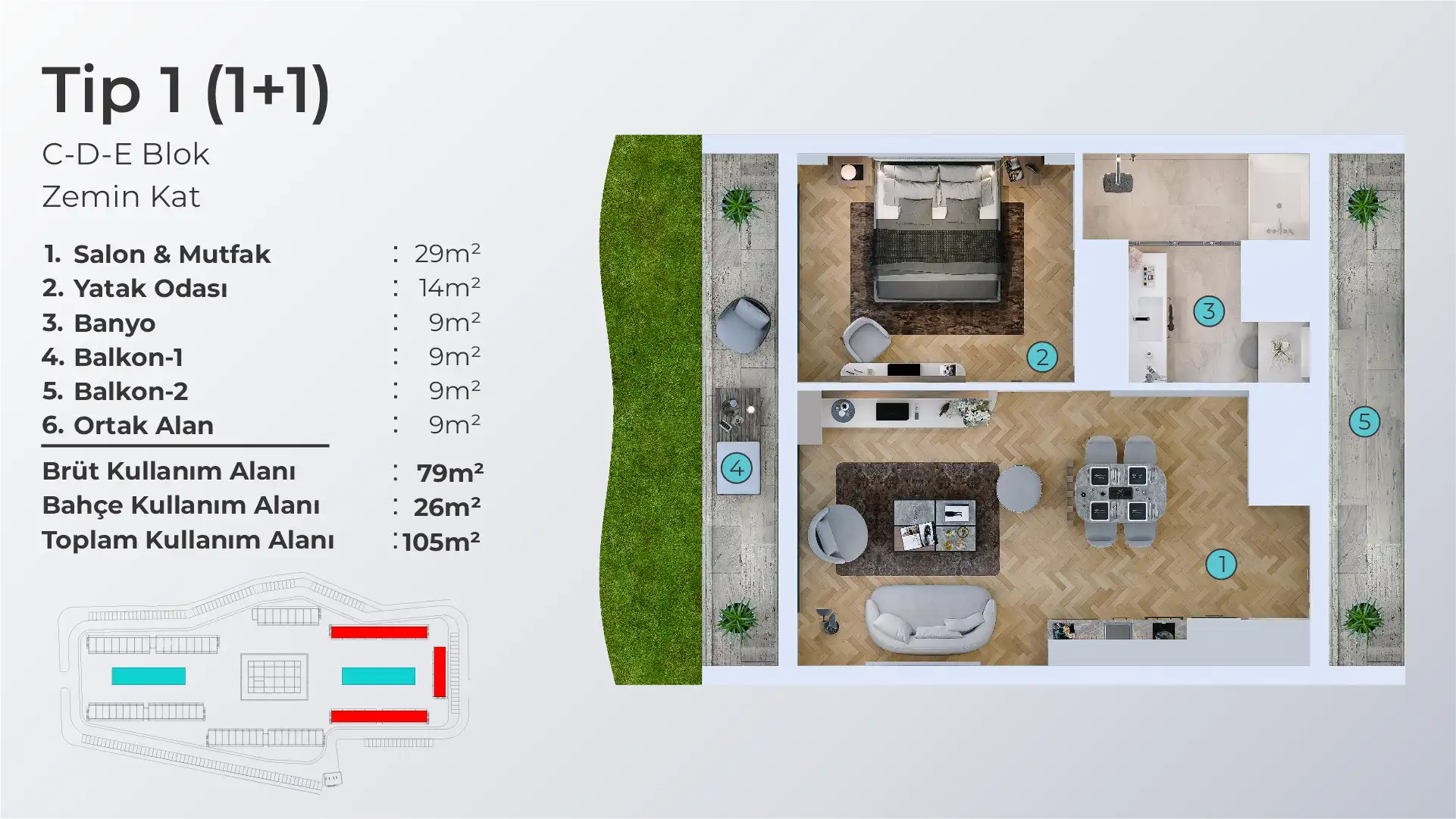 Sade ve şık tasarımlarla dizayn edilen tüm dairelerimiz sizlere konforlu yaşam alanları sunmaktadır.